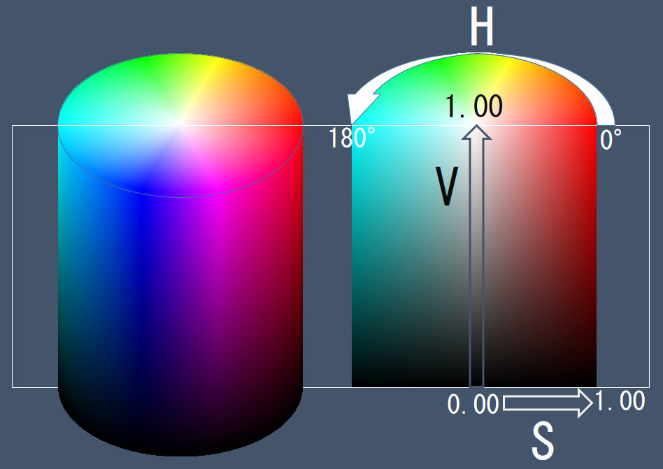 | H | Hue | 0° | 360° |